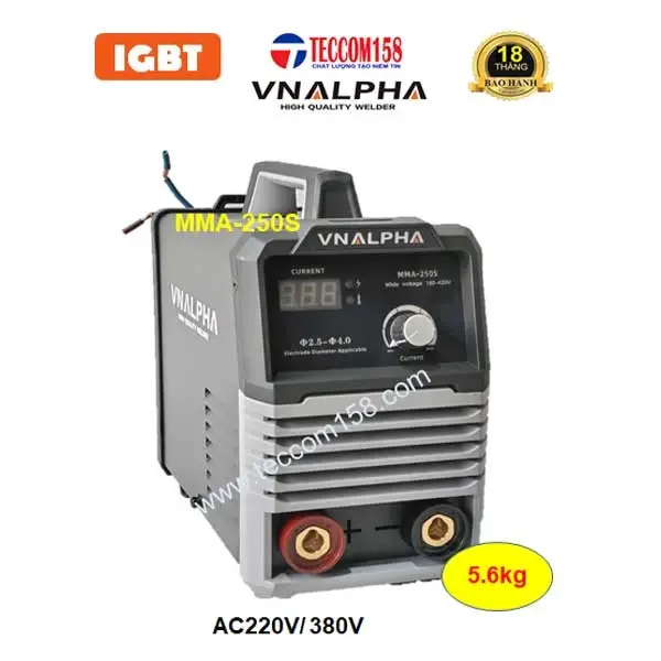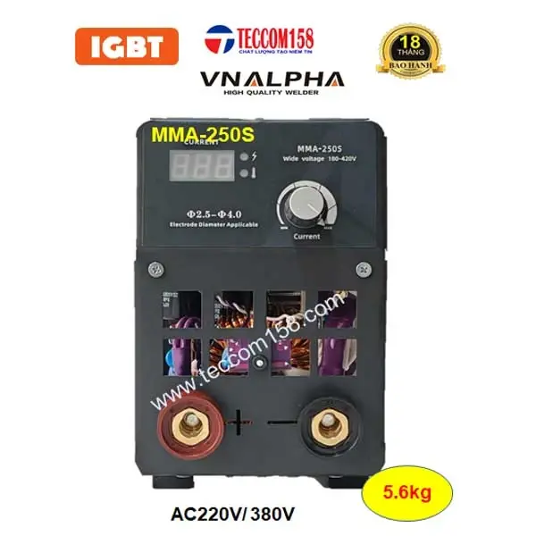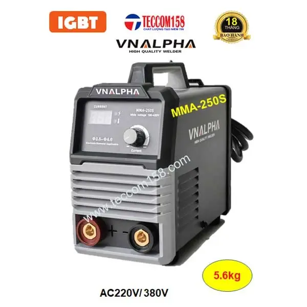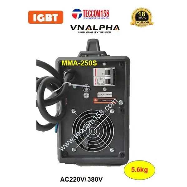 - Máy hàn VNALPHA MMA-250S là máy hàn có thiết kế làm mát khí tập trung đầu tiên và duy nhất tại VN. Do đó, máy hàn liên tục thời gian dài, đảm bảo công suất mà không lo cháy chập. Đây là dòng máy được AE thợ chuyên nghiệp lựa chọn dùng cho mọi công trình, những nơi điện yếu, cáp hàn dài MMA 250S của thương hiệu VNALPHA luôn đáp ứng làm hài lòng AE thợ.