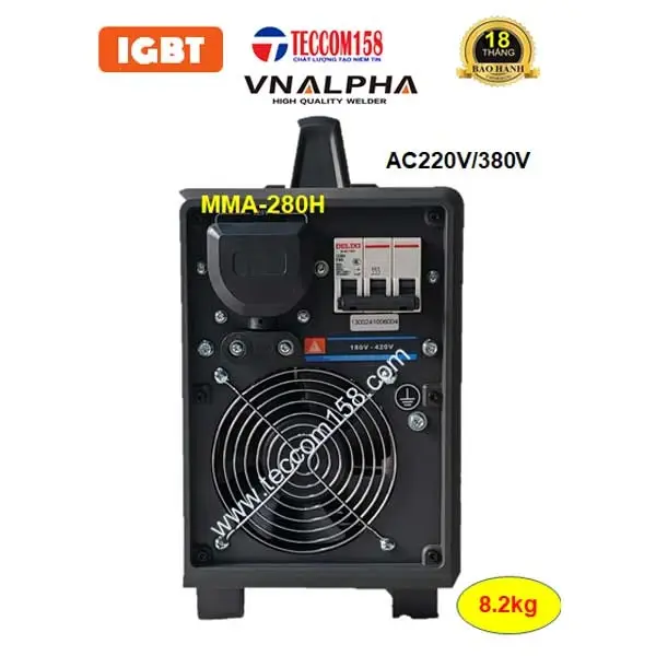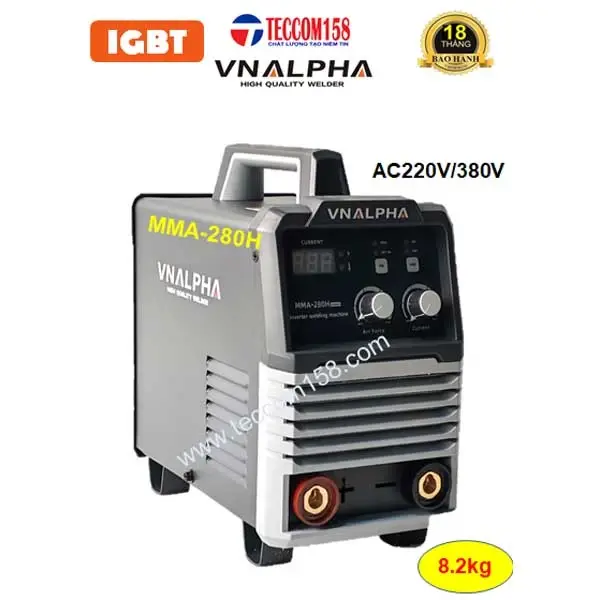 - Máy hàn VNALPHA MMA-280H là máy hàn có thiết kế làm mát khí tập trung đầu tiên và duy nhất tại VN. Do đó, máy hàn liên tục thời gian dài, đảm bảo công suất mà không lo cháy chập. Đây là dòng máy được AE thợ chuyên nghiệp lựa chọn dùng cho mọi công trình, những nơi điện yếu, cáp hàn dài MMA 280H của thương hiệu VNALPHA luôn đáp ứng làm hài lòng AE thợ.